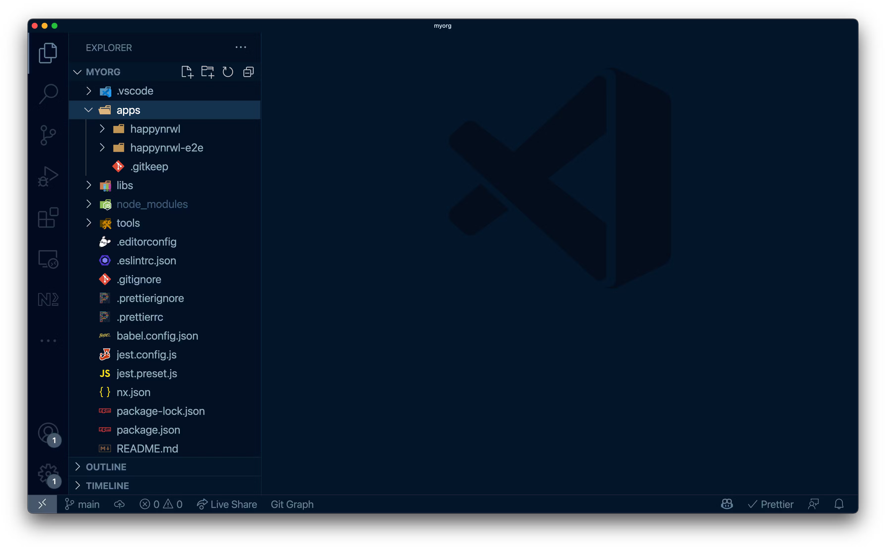 Layout of a Nx workspace in VSCode